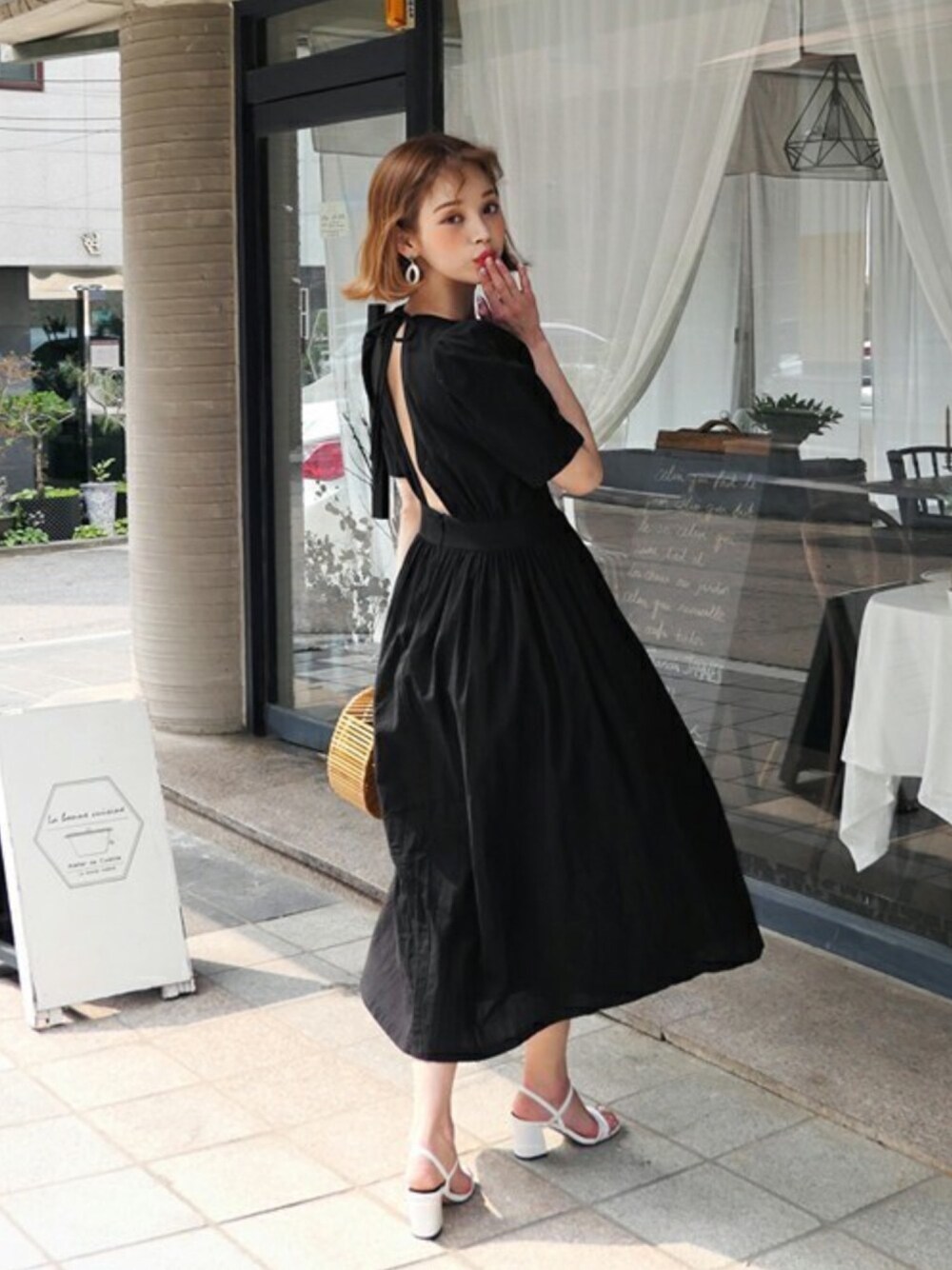 ディーホリックのワンピース「バックオープンフレアワンピース」を使ったコーディネート