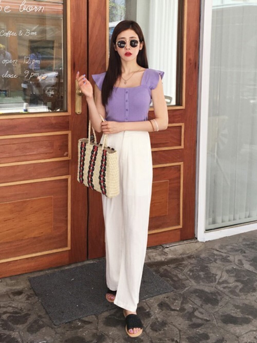ディーホリックのタンクトップ「ラッフルショルダーニットスリーブレス」を使ったコーディネート