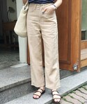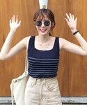 ディーホリックのタンクトップ「リネンボーダースリーブレス」を使ったコーディネート