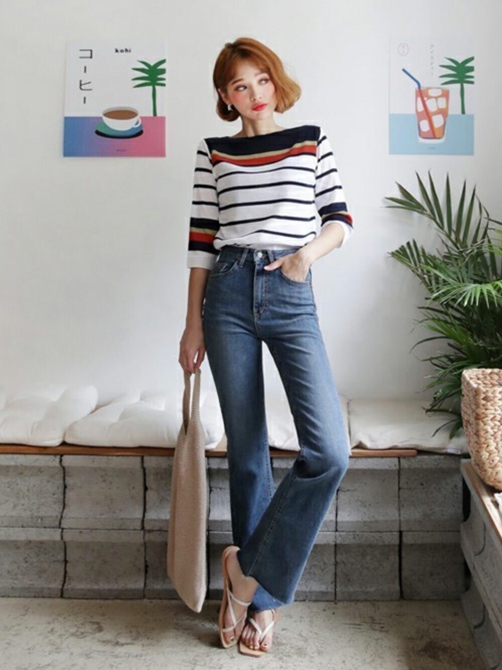 ディーホリックのニット/セーター「ボートネック配色ボーダーニット」を使ったコーディネート