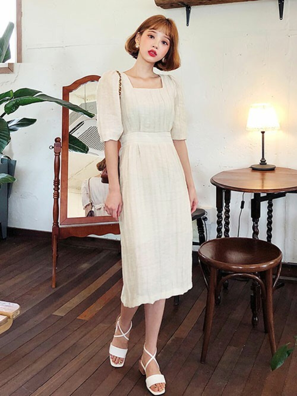 ディーホリックのワンピース「スクエアネックバックタイワンピース」を使ったコーディネート