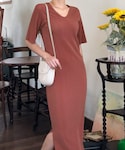 ディーホリックのワンピース「Uネックスリットリブワンピース」を使ったコーディネート