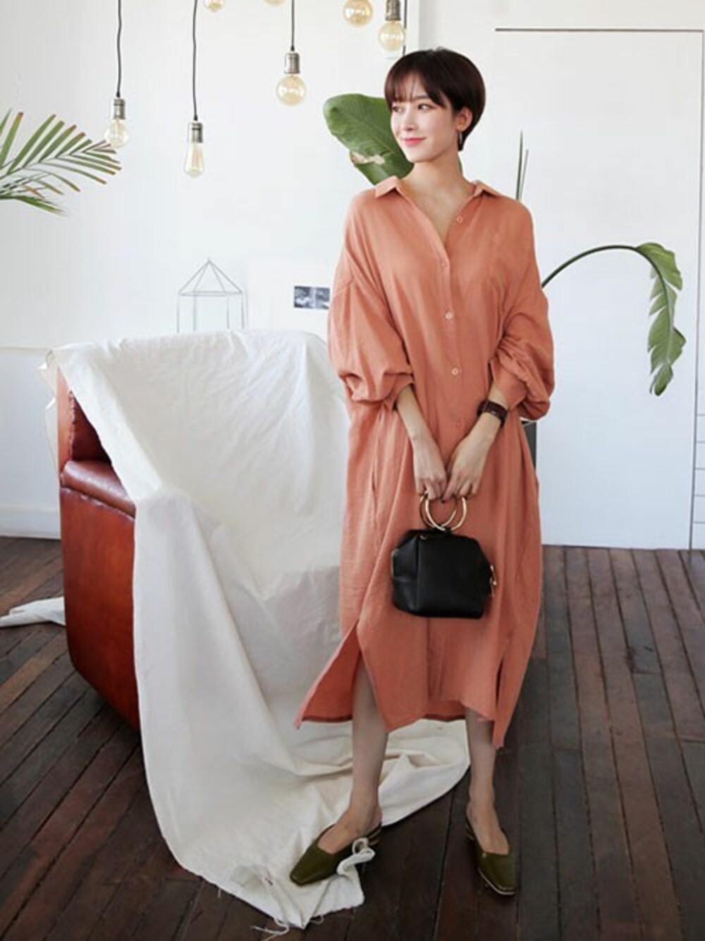 ディーホリックのワンピース「ワンポケットロングシャツワンピース」を使ったコーディネート