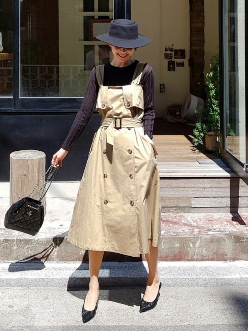 ディーホリックのワンピース「ベルトSETダブルボタンワンピース」を使ったコーディネート