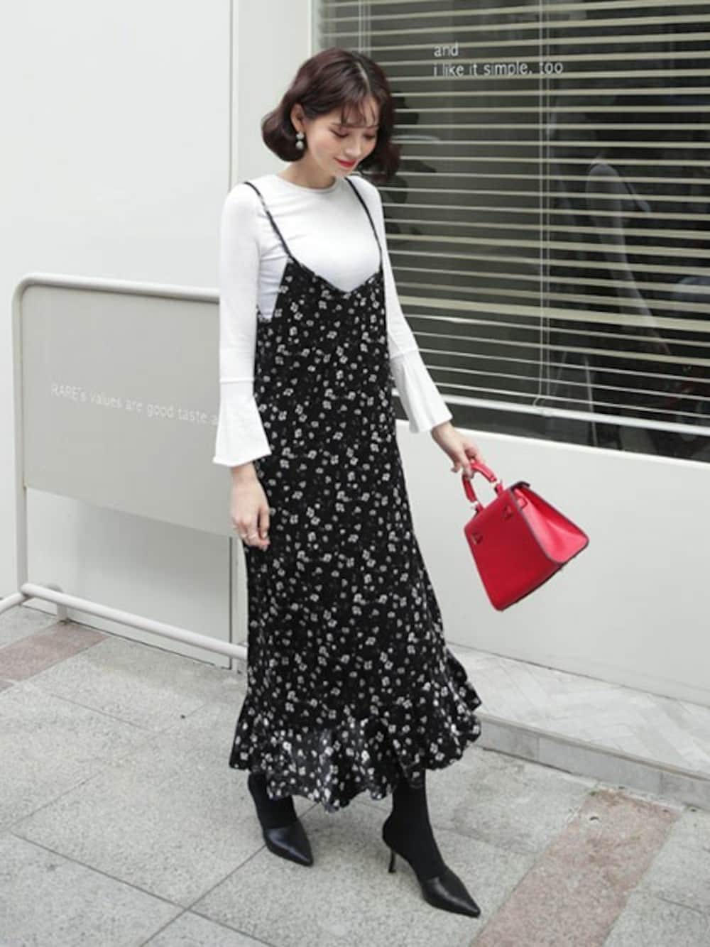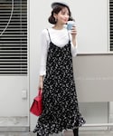 ディーホリックのワンピース「TシャツSETベロアフローラルワンピース」を使ったコーディネート