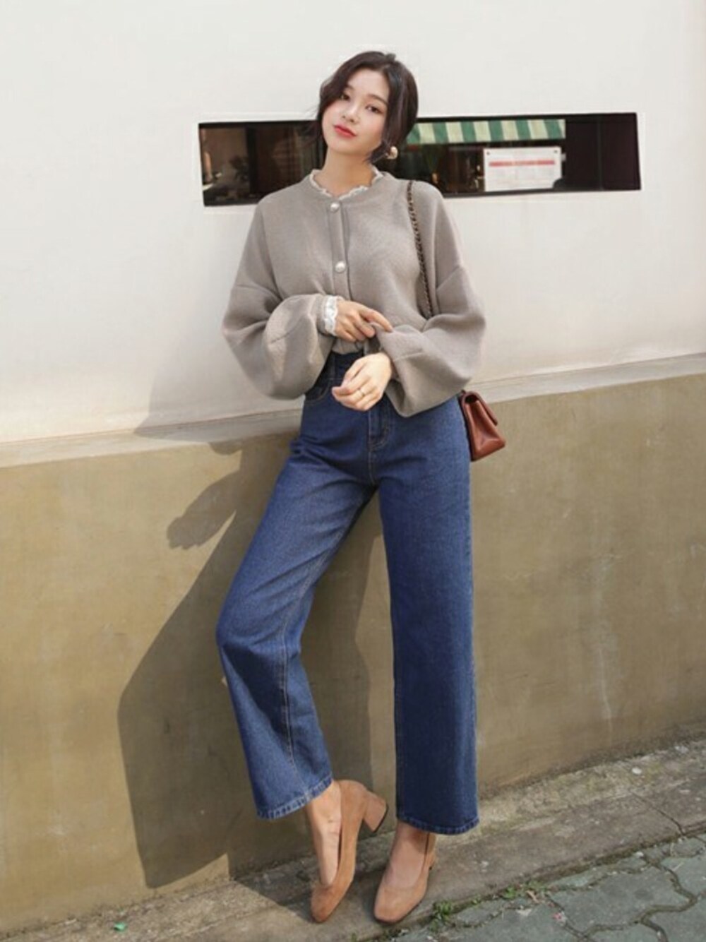 ディーホリックのカーディガン/ボレロ「パールボタンレースヘムカーディガン」を使ったコーディネート