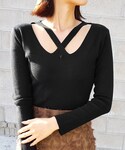 ディーホリックのニット/セーター「ネックXストラップニット」を使ったコーディネート