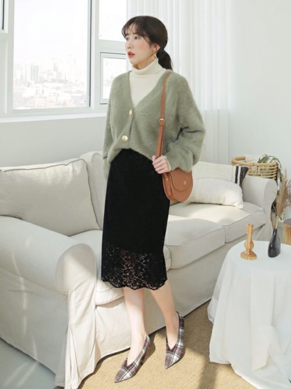 ディーホリックのカーディガン/ボレロ「ビッグボタンVネックカーディガン」を使ったコーディネート