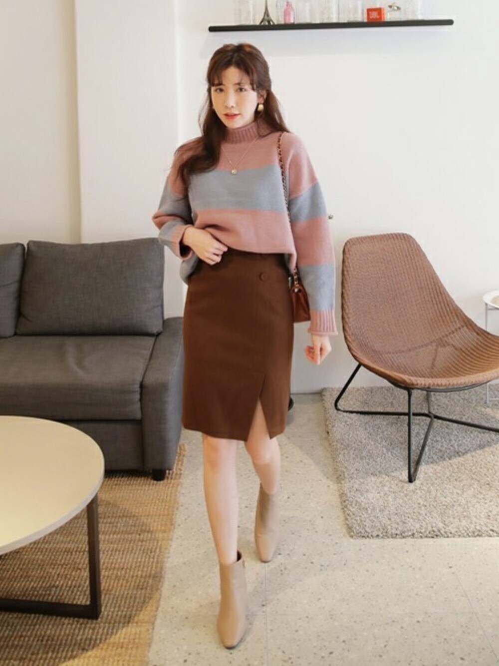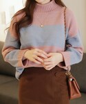 ディーホリックのニット/セーター「配色ボーダーハイネックニット」を使ったコーディネート