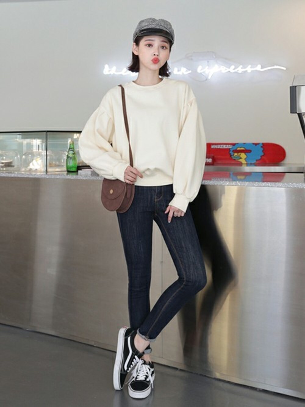 ディーホリックのスウェット「裏起毛パフスリーブスウェット」を使ったコーディネート