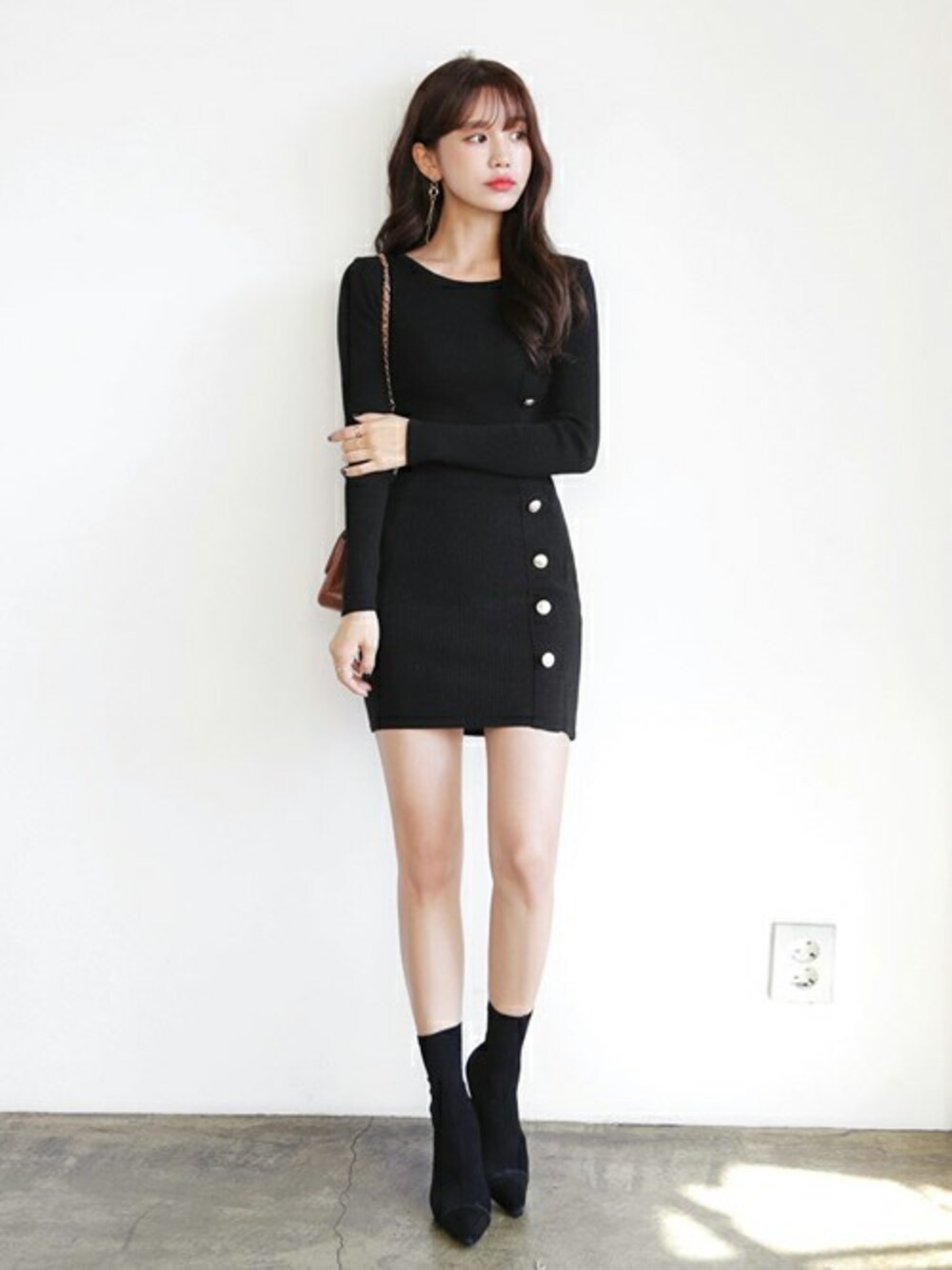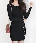 ディーホリックのワンピース「ゴールドボタンスリムニットワンピース」を使ったコーディネート
