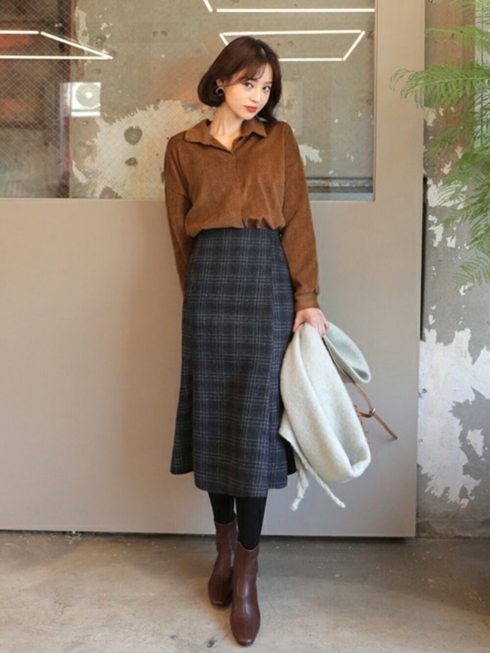 ディーホリックのシャツ/ブラウス「コーデュロイVネックカラーシャツ」を使ったコーディネート