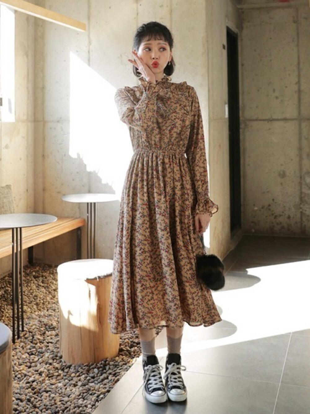 ディーホリックのワンピース「シャーリングフリルフローラルワンピース」を使ったコーディネート