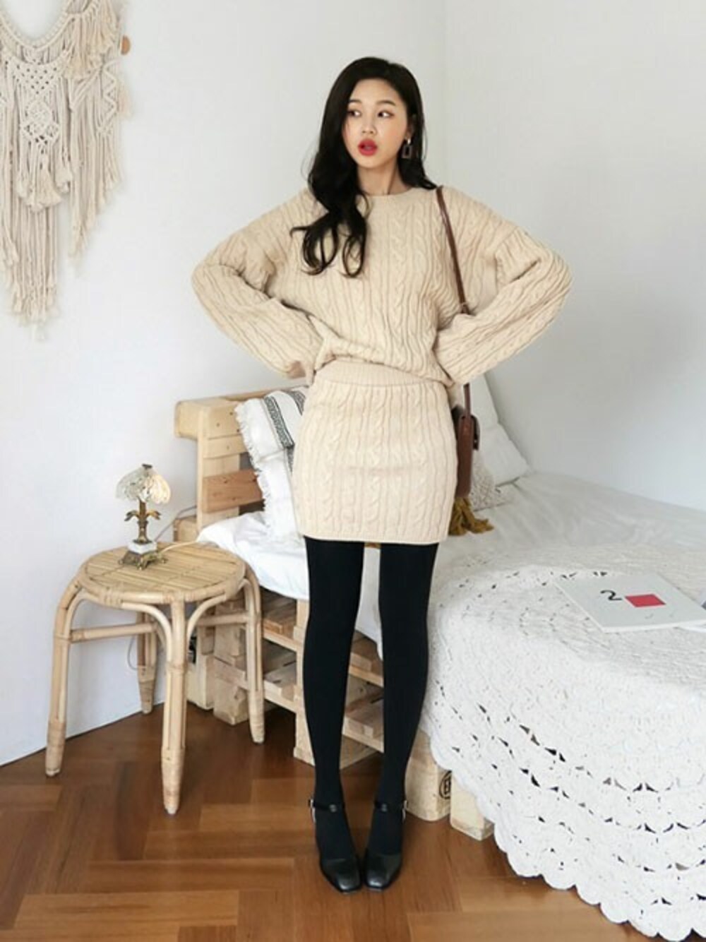 ディーホリックのニット/セーター「アクリルツイストニット&ミニスカートSET」を使ったコーディネート