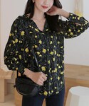 ディーホリックのシャツ/ブラウス「ノーカラーVネック花柄ブラウス」を使ったコーディネート