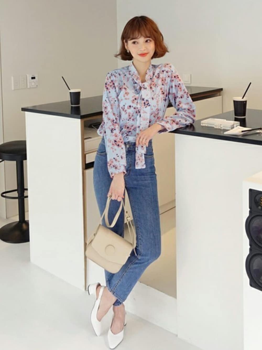 ディーホリックのシャツ/ブラウス「ボウタイフローラルブラウス」を使ったコーディネート