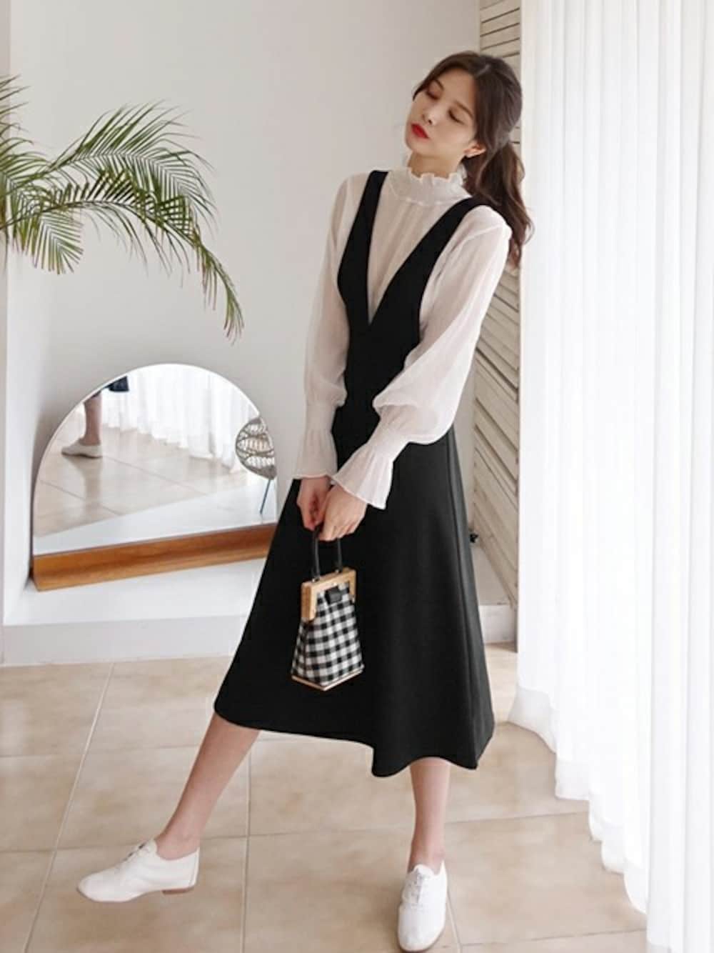 ディーホリックのワンピース「Vネックスリーブレスフレアワンピース」を使ったコーディネート
