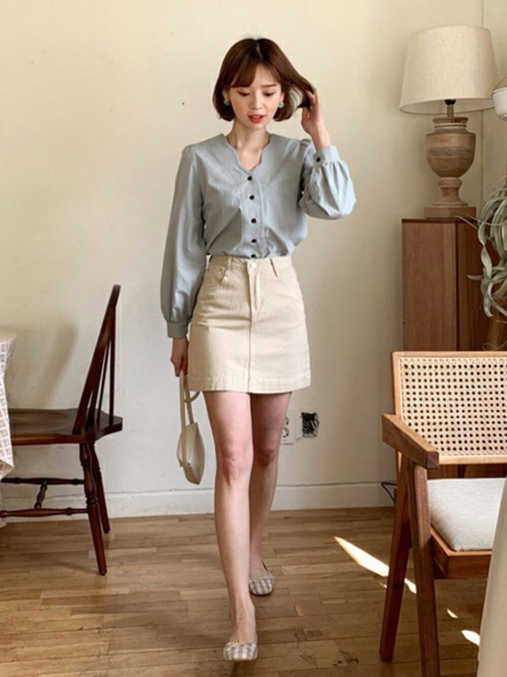 ディーホリックのシャツ/ブラウス「スカラップVネックブラウス」を使ったコーディネート
