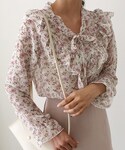 ディーホリックのシャツ/ブラウス「フリルネックリボン花柄ブラウス」を使ったコーディネート