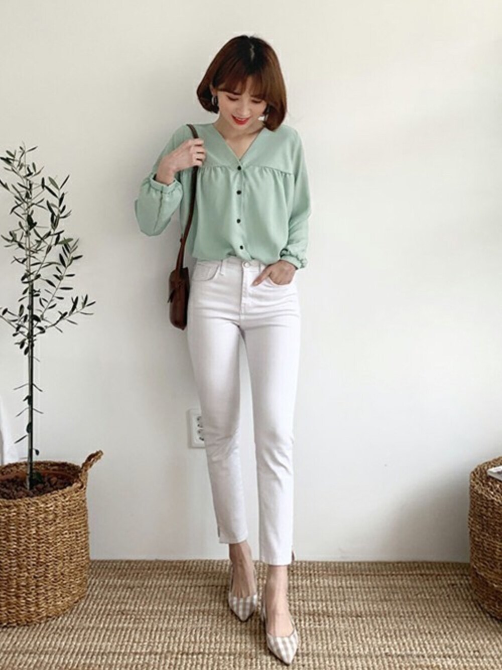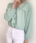 ディーホリックのシャツ/ブラウス「ギャザーVネックボタンブラウス」を使ったコーディネート