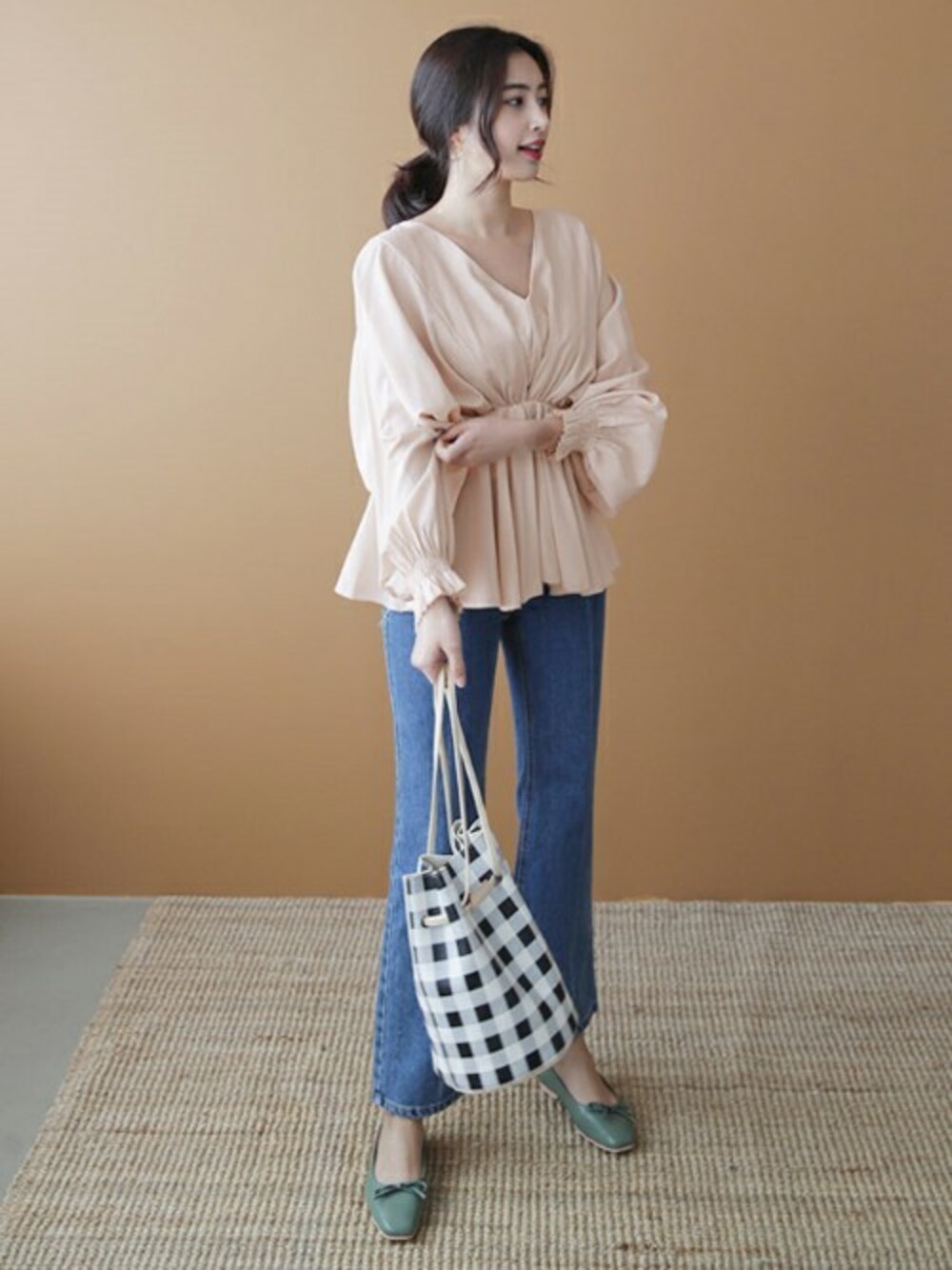 ディーホリックのシャツ/ブラウス「Vネックギャザーフレアブラウス」を使ったコーディネート