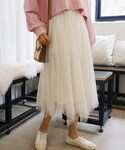 ディーホリックのスカート「リバーシブルプリーツチュールスカート」を使ったコーディネート