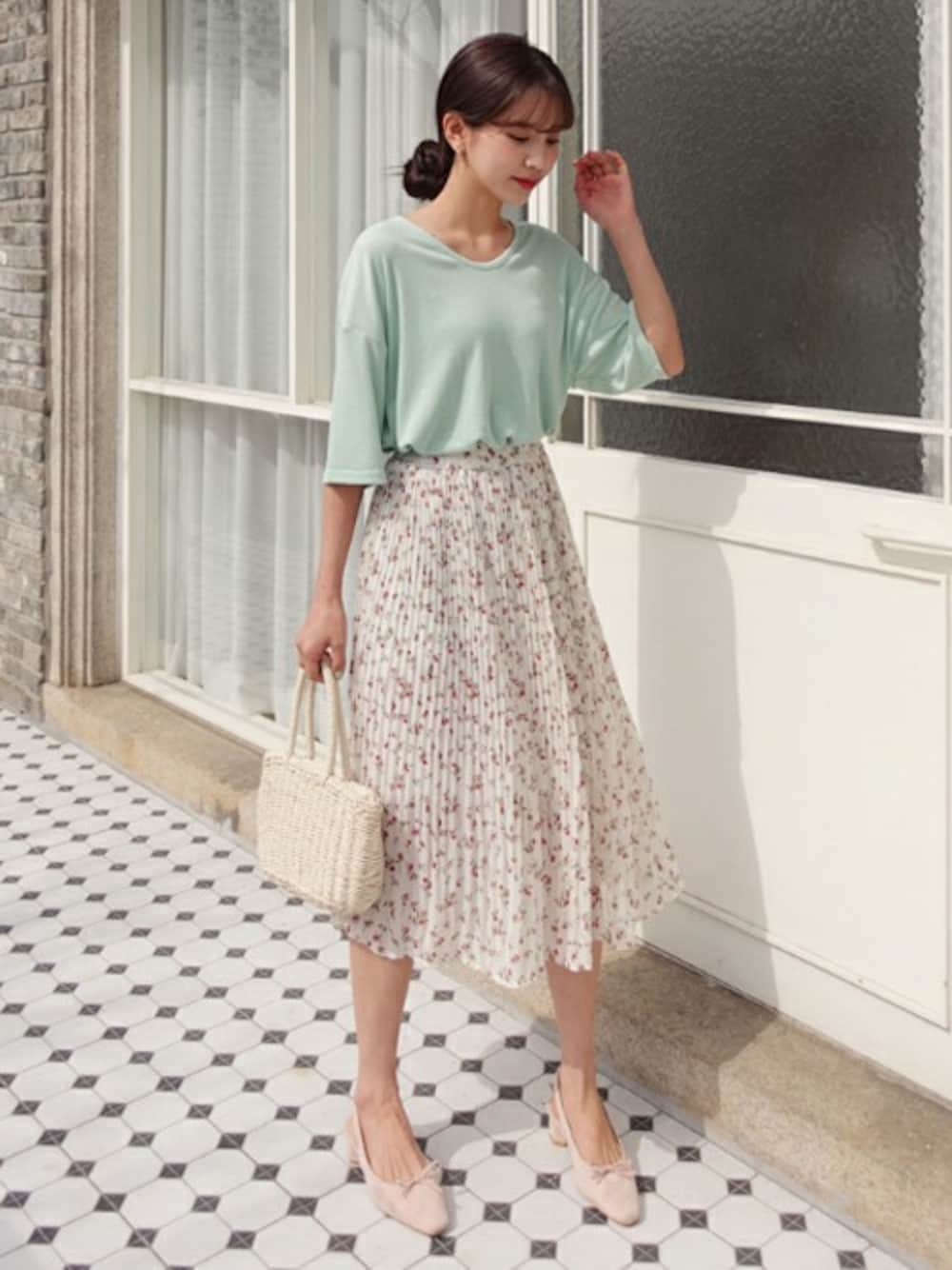 ディーホリックのスカート「プリーツフラワーパターンスカート」を使ったコーディネート