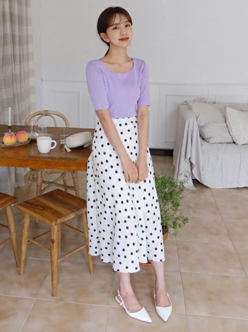ディーホリックのスカート「フレアロングドットスカート」を使ったコーディネート