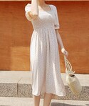 ディーホリックのワンピース「シャーリングドットロングワンピース」を使ったコーディネート