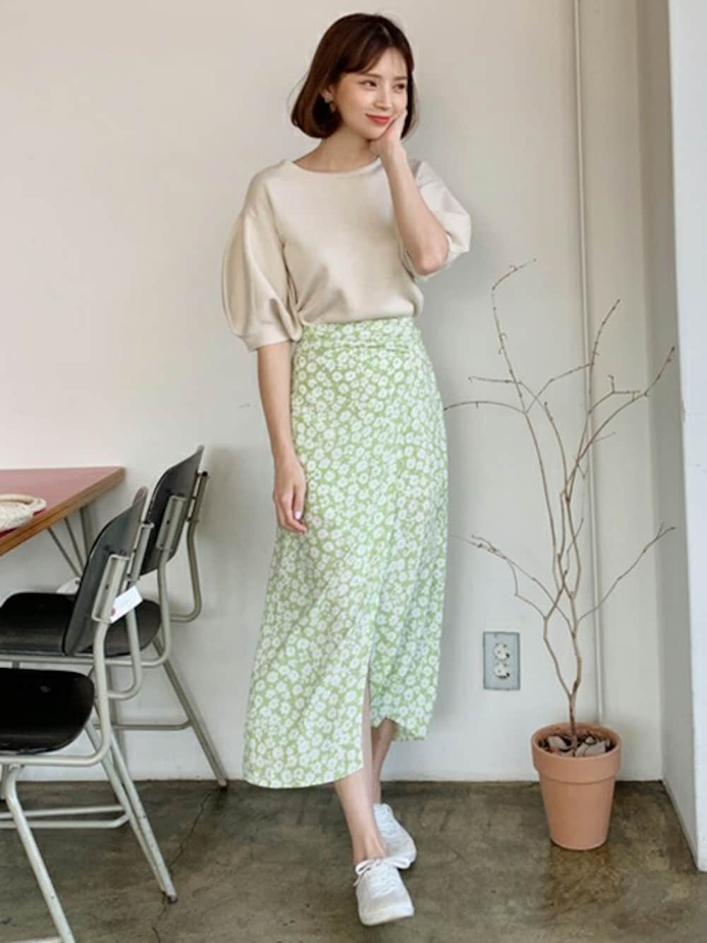 ディーホリックのスカート「ギャザーフローラルスリットスカート」を使ったコーディネート