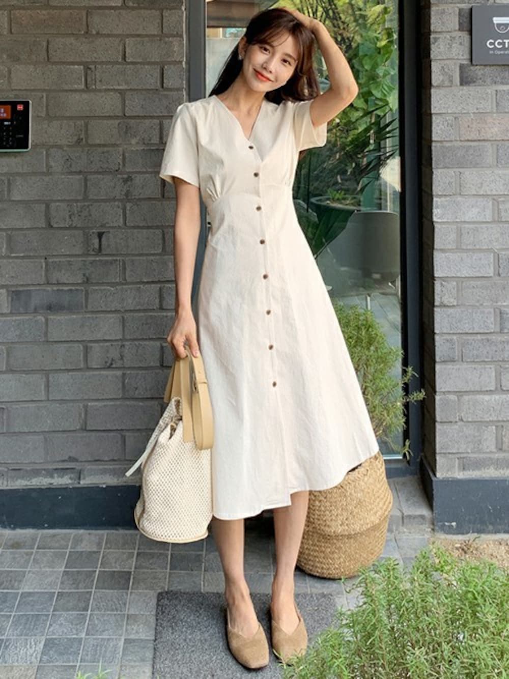 ディーホリックのワンピース「ストラップVネックボタンワンピース」を使ったコーディネート