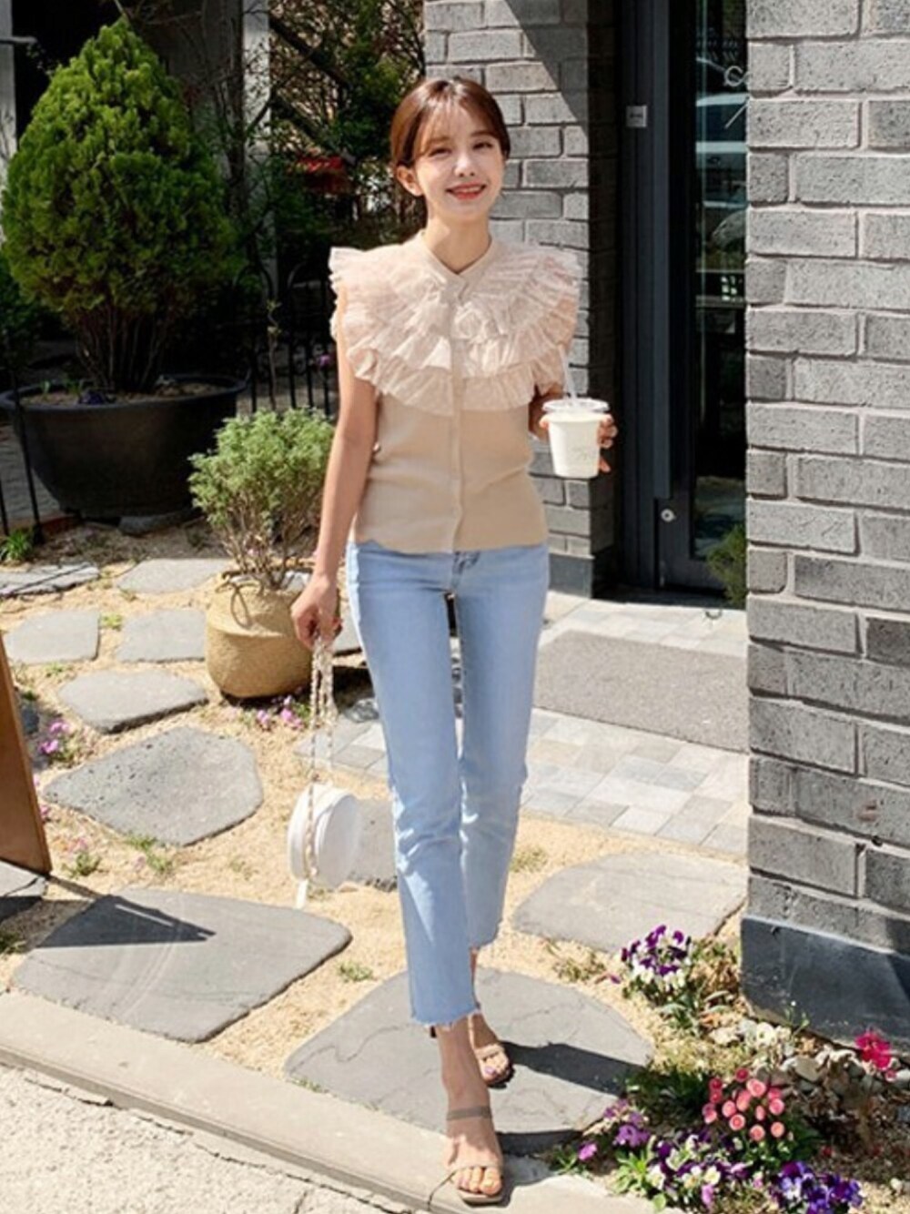 ディーホリックのタンクトップ「ドットチュールボタンスリーブレス」を使ったコーディネート