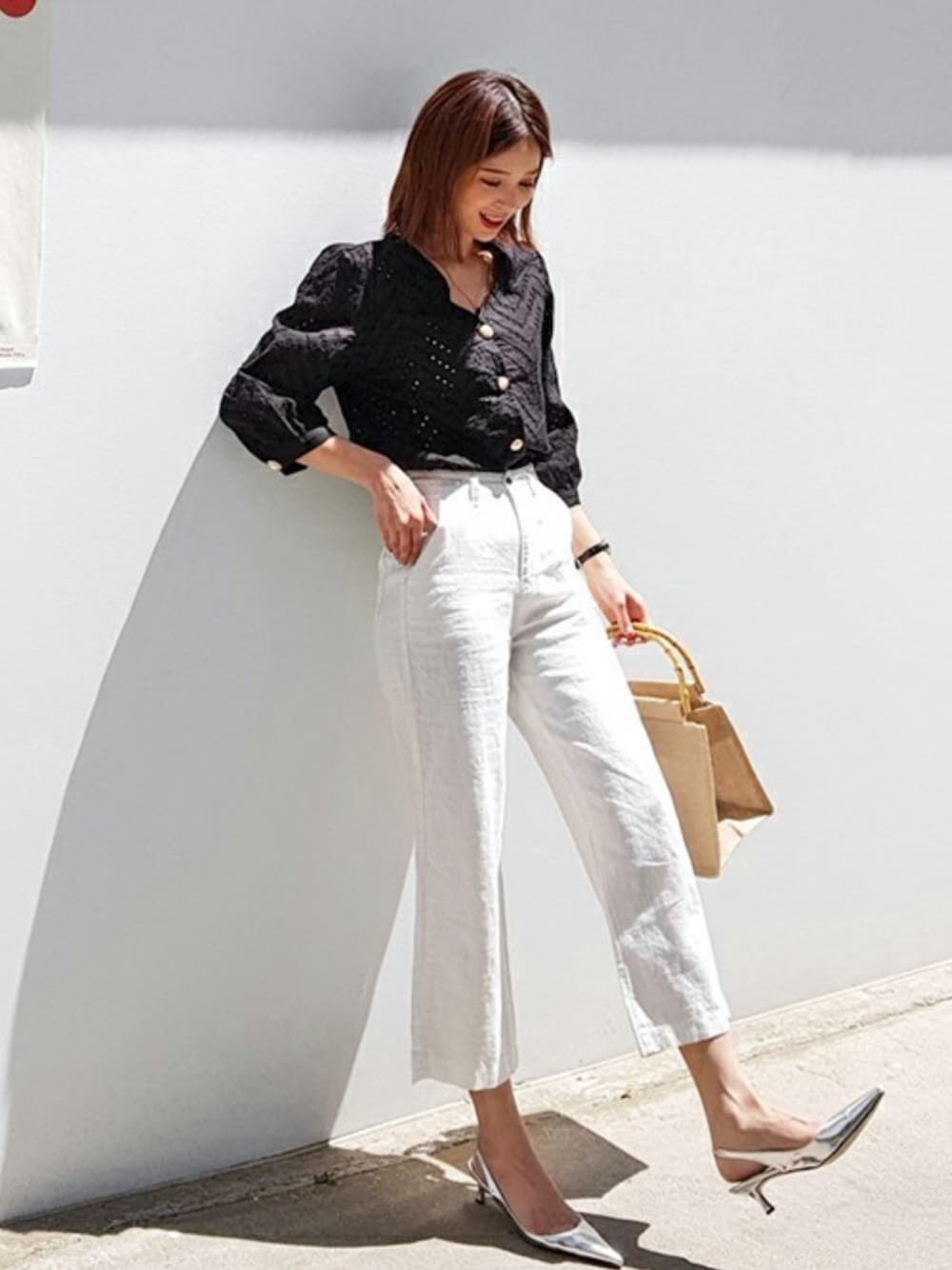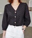ディーホリックのシャツ/ブラウス「ジグザグパンチングパールボタンブラウス」を使ったコーディネート