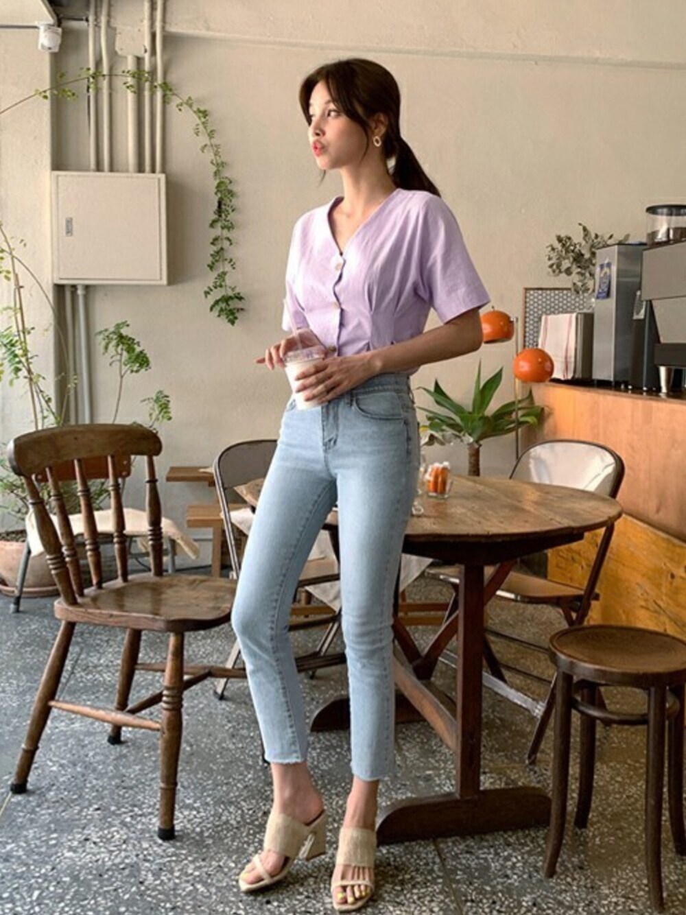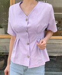 ディーホリックのシャツ/ブラウス「Vネックボタンタックブラウス」を使ったコーディネート