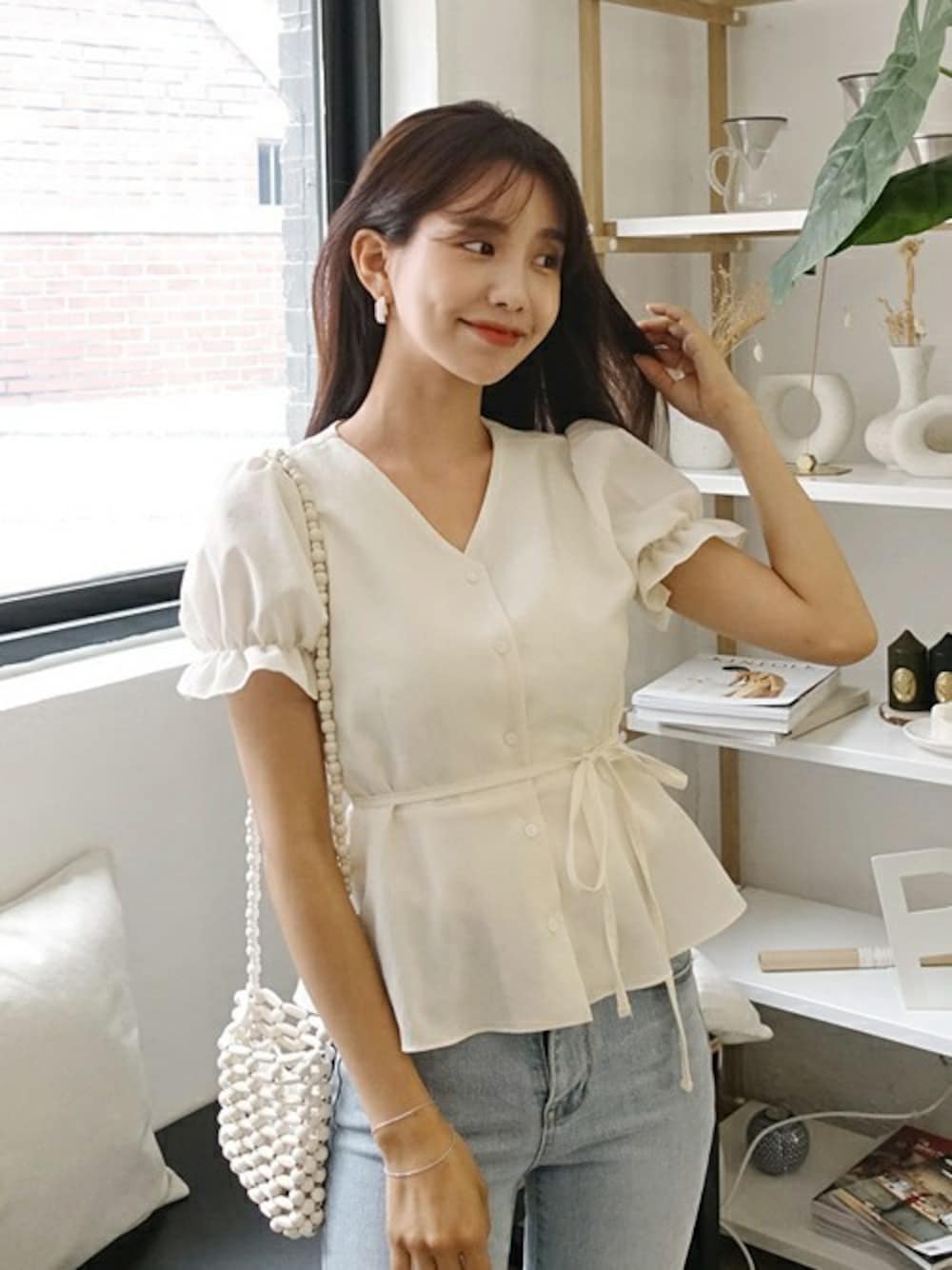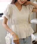 ディーホリックのシャツ/ブラウス「Vネックボタンショートスリーブブラウス」を使ったコーディネート