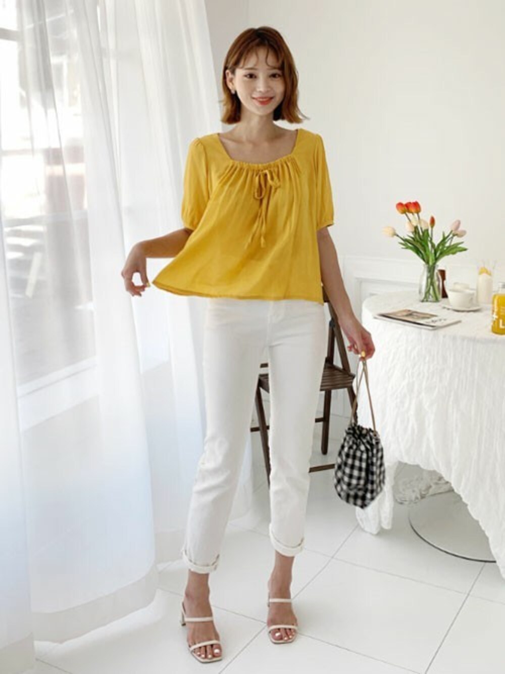 ディーホリックのシャツ/ブラウス「ギャザーリボンスクエアブラウス」を使ったコーディネート