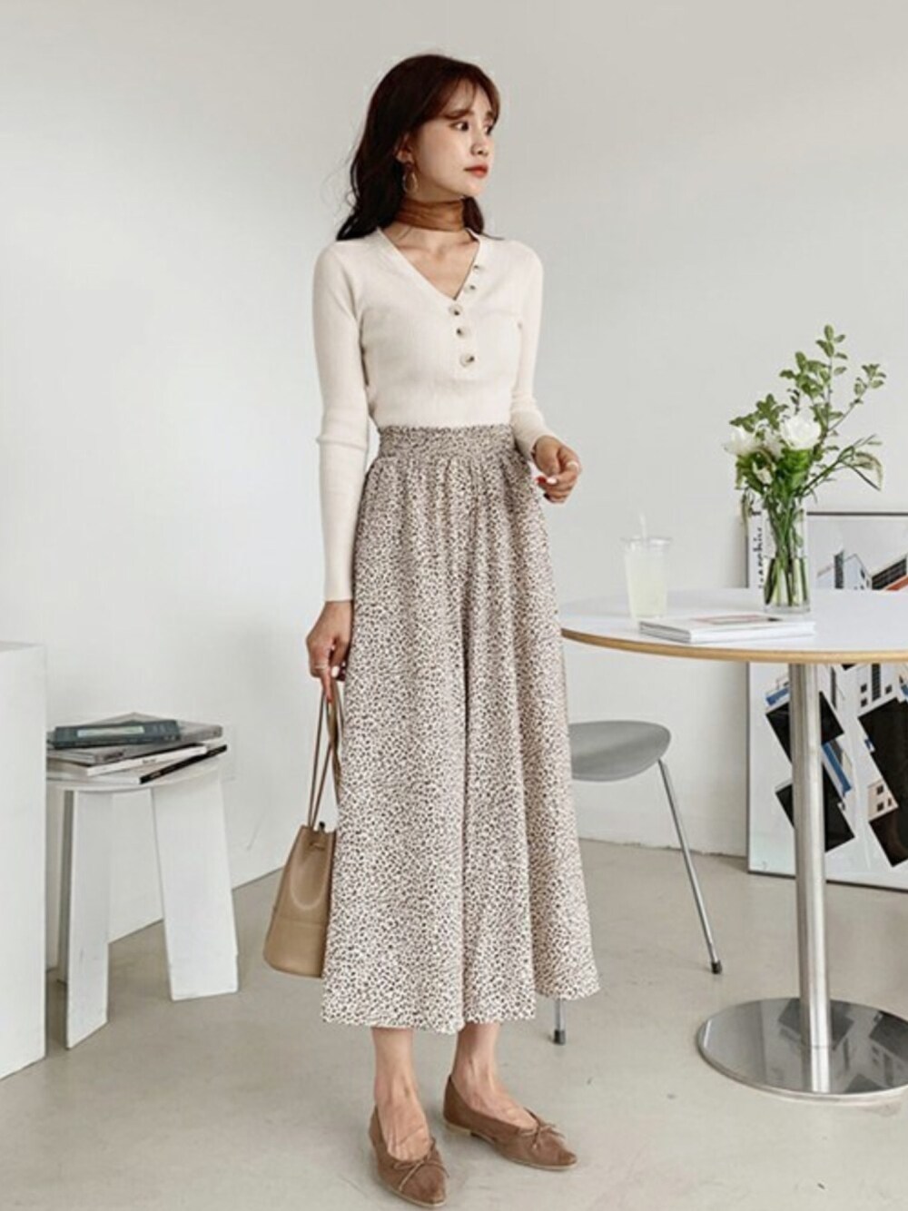 ディーホリックのニット/セーター「Vネックボタンリブニット」を使ったコーディネート