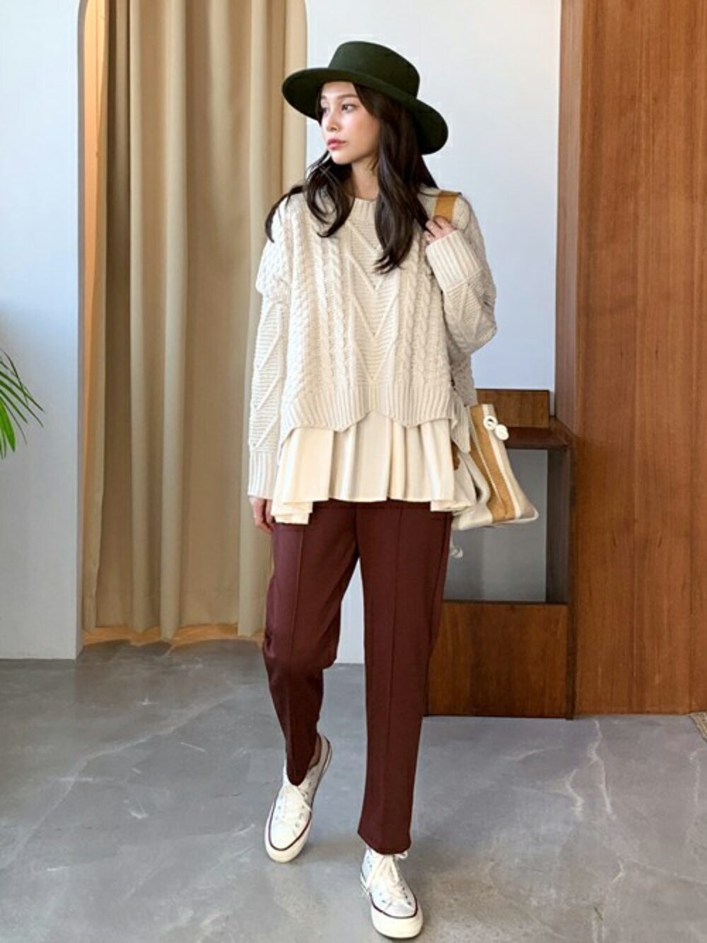 ディーホリックのニット/セーター「レイヤードヘムニット」を使ったコーディネート