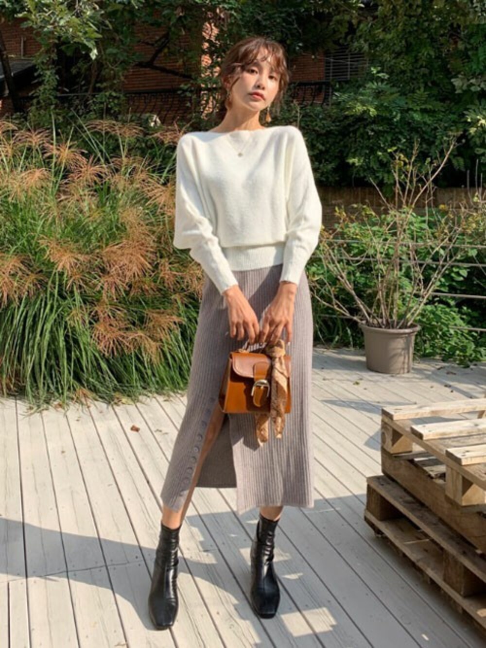 ディーホリックのスカート「ボタンリブニットスカート」を使ったコーディネート