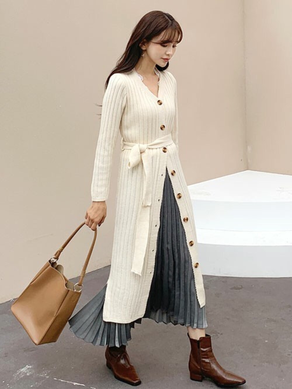 ディーホリックのワンピース「ストラップ付ボタンニットワンピース」を使ったコーディネート