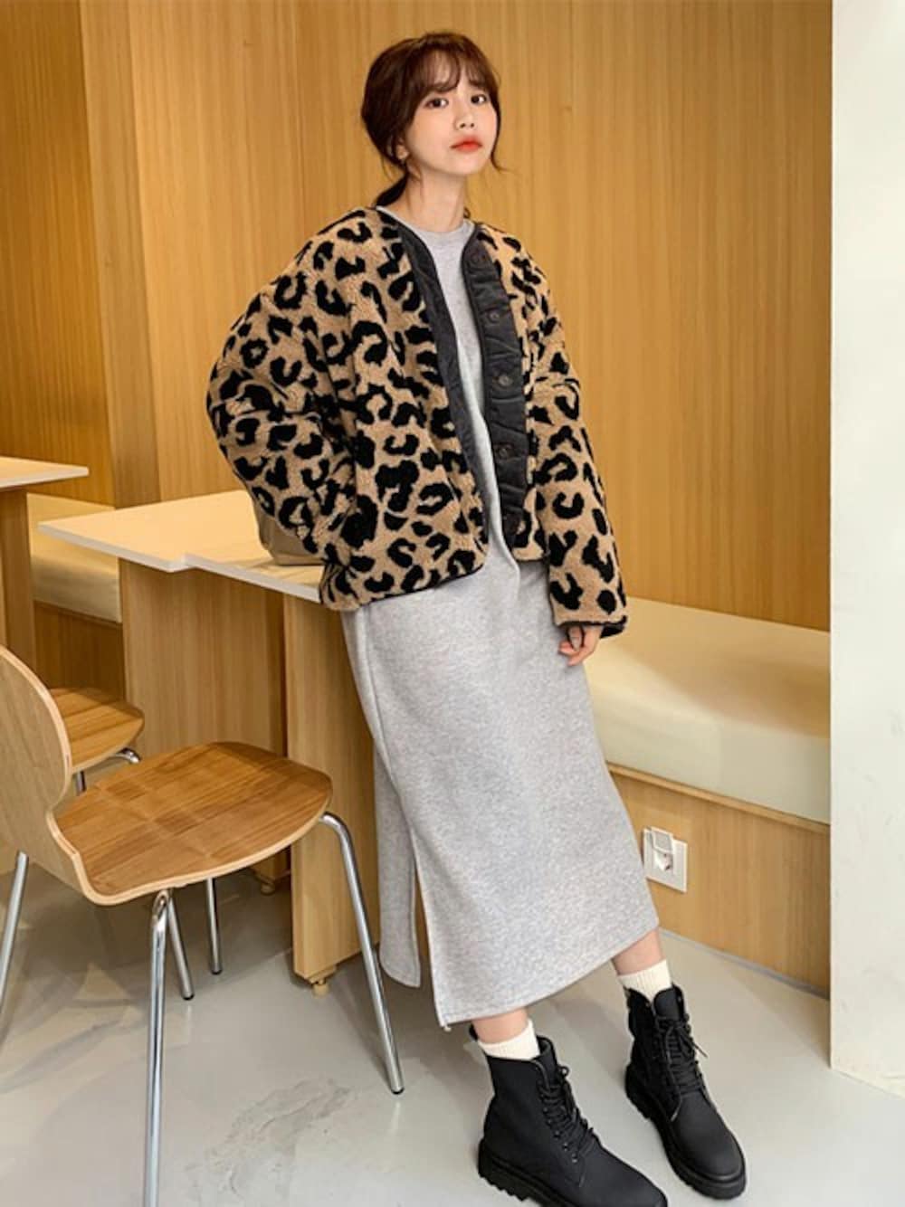 ディーホリックのその他アウター「レオパードボアジャケット」を使ったコーディネート