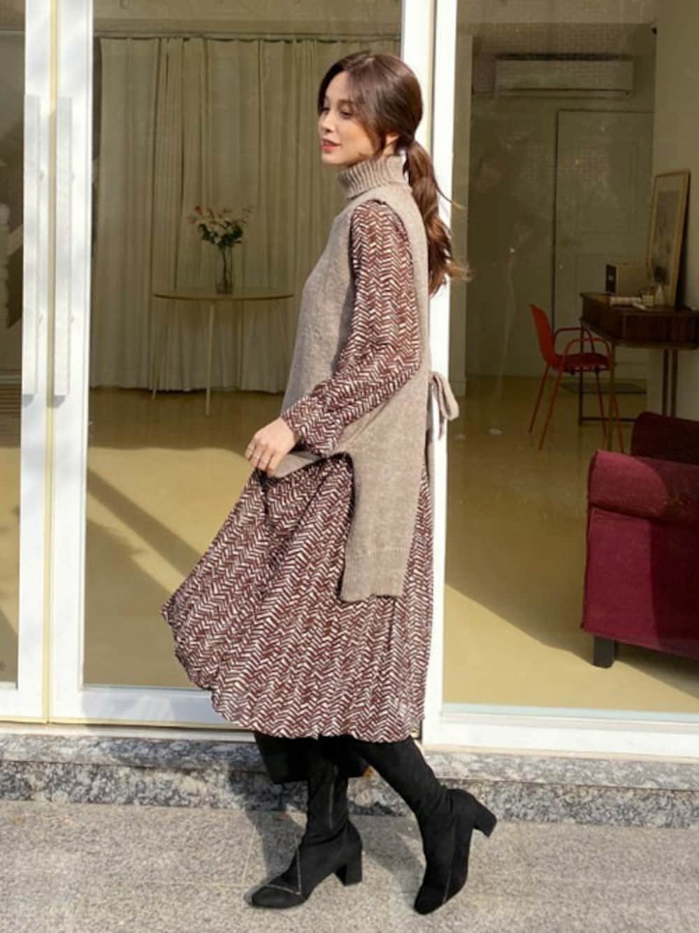 ディーホリックのワンピース「ストラップ付パターンプリーツワンピース」を使ったコーディネート