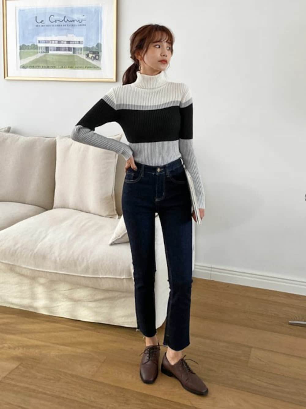 ディーホリックのニット/セーター「配色タートルネックニット」を使ったコーディネート