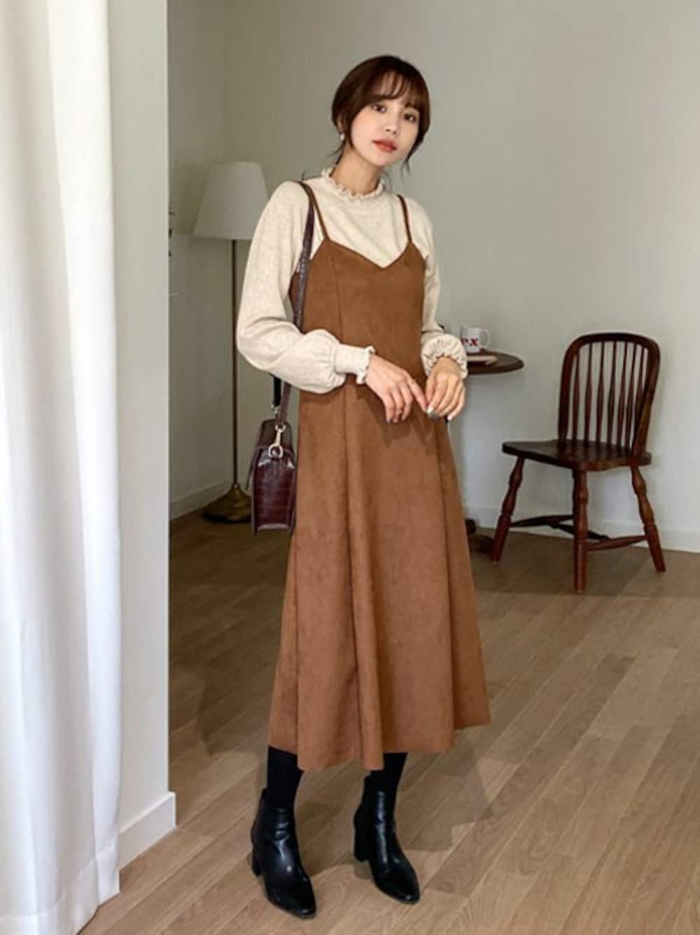 ディーホリックのワンピース「スエード調キャミワンピース」を使ったコーディネート