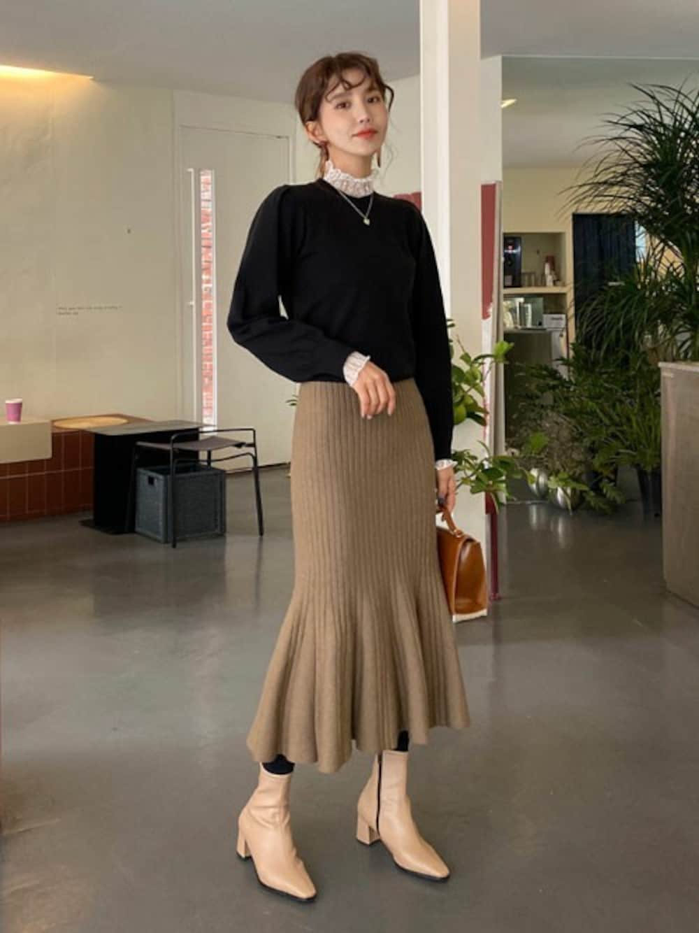 ディーホリックのスカート「リブニットマーメイドスカート」を使ったコーディネート