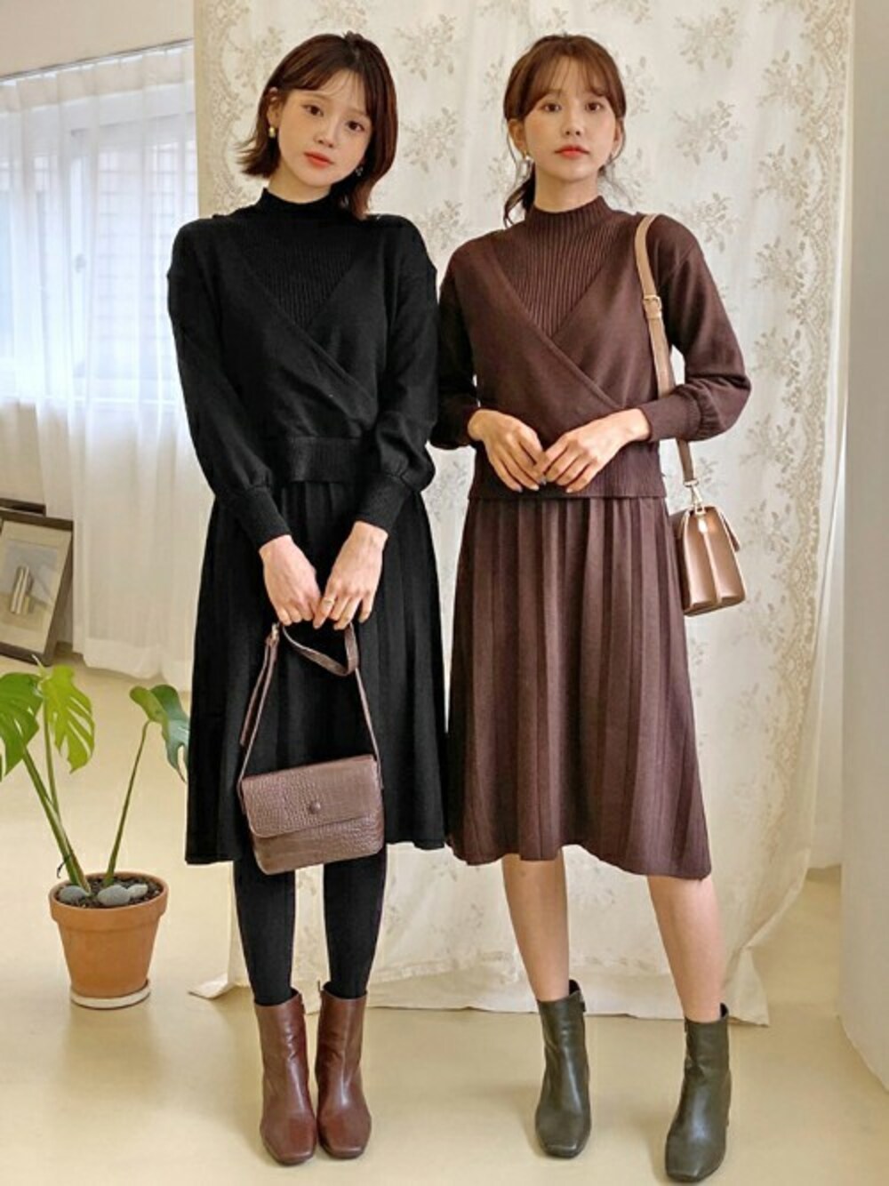 ディーホリックのワンピース「カシュクールニット&ワンピースSET」を使ったコーディネート