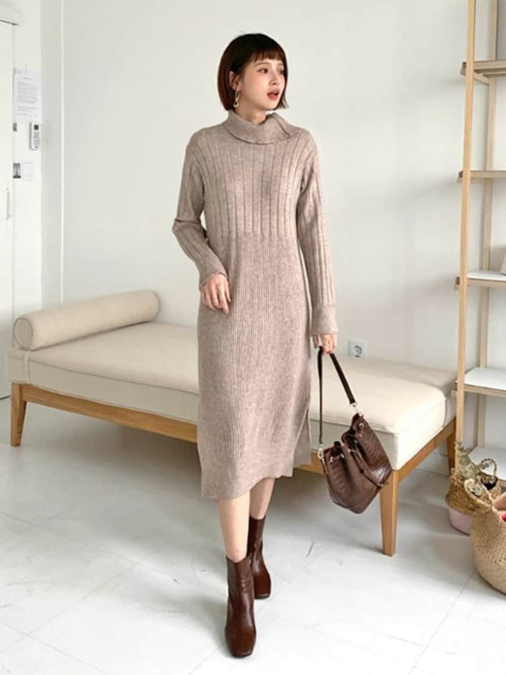 ディーホリックのワンピース「ボタンタートルネックワンピース」を使ったコーディネート
