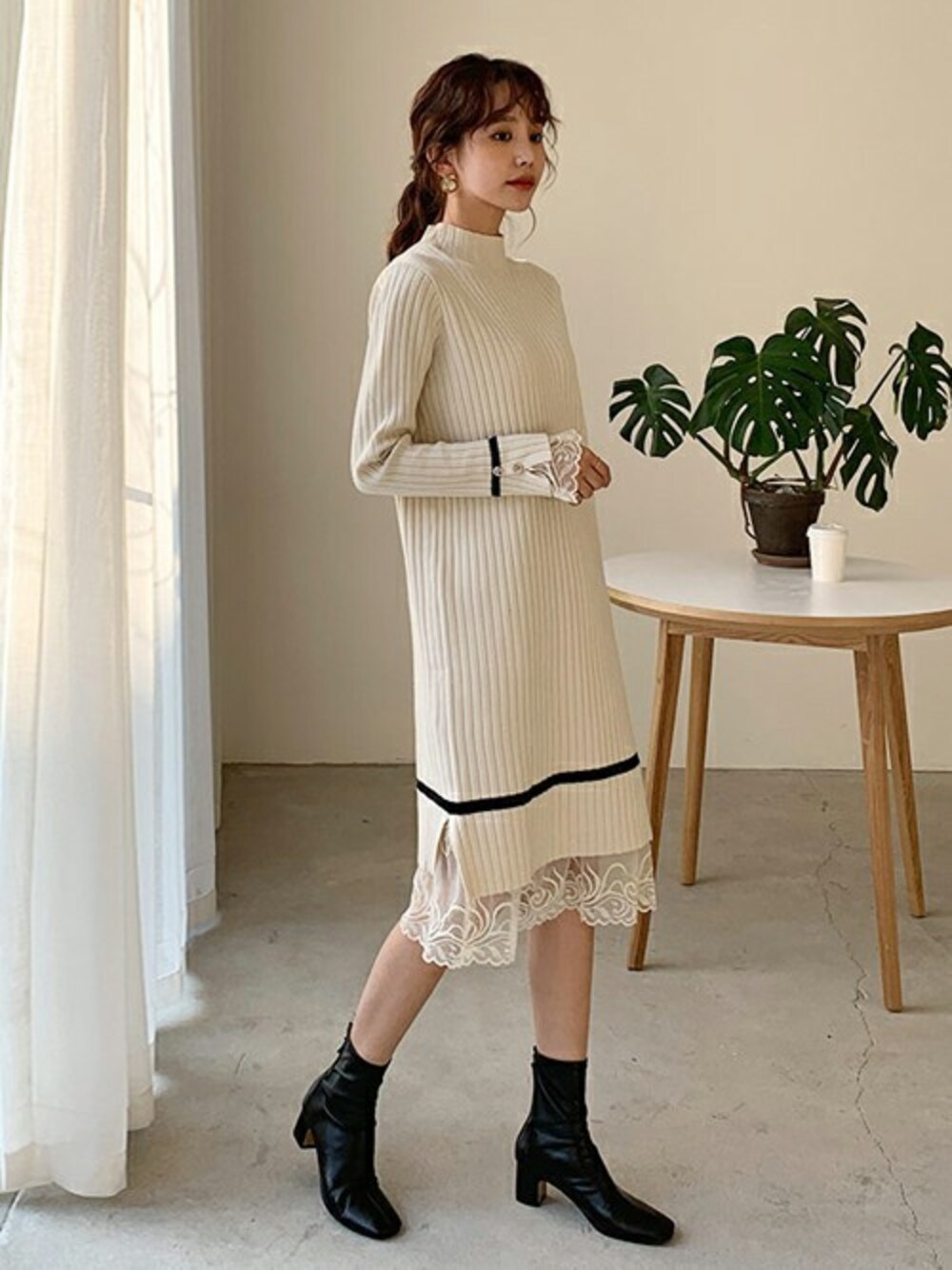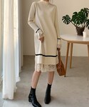 ディーホリックのワンピース「レースヘム配色ニットワンピース」を使ったコーディネート