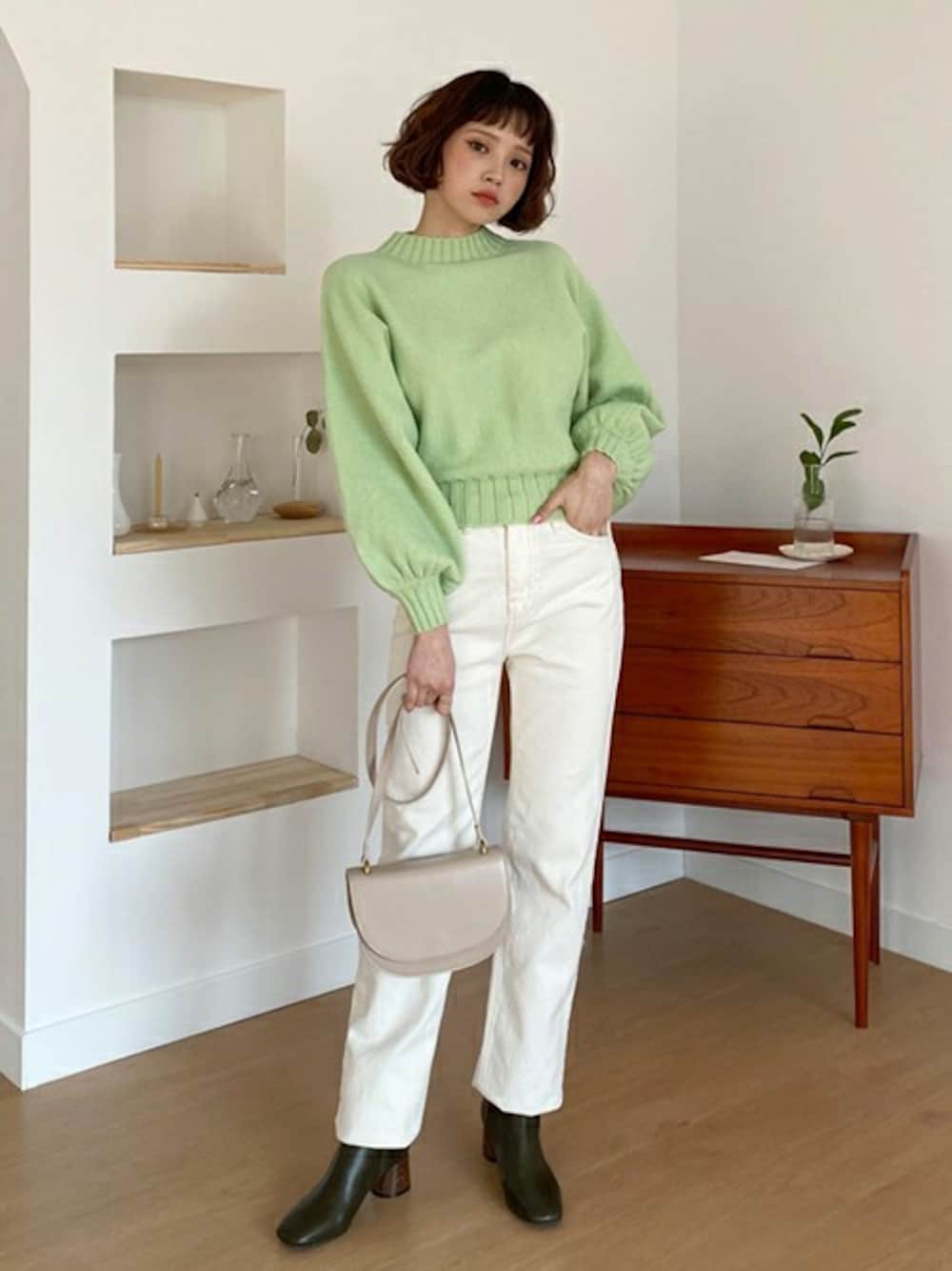 ディーホリックのニット/セーター「リボンパフスリーブニット」を使ったコーディネート