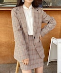 ディーホリックのセットアップ「チェックジャケット&ミニスカートSET」を使ったコーディネート